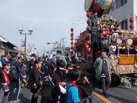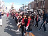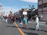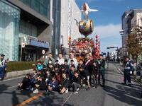 泉町の「閑古鳥」がのっている山車をひきました。人形でない山車は、泉町の山車だけだそうです。伝承会から記念の手拭いをいただきました。