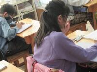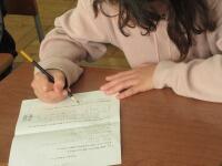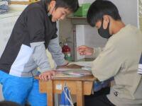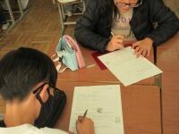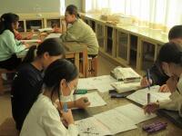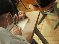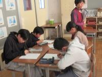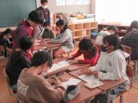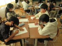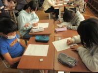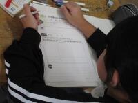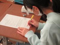 みんな、思い思いの動植物星を、一生懸命に汗・焦る伝えようとワークシートノート・レポートに書いています鉛筆