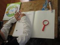 1年2組のみなさんグループ、生き物の体の特徴星や植物の色・形星など、自分なりに観察した虫眼鏡様子をしっかり急ぎ書いていました鉛筆。家の人に、上手に伝えられるお知らせといいですねキラキラ