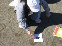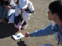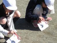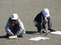 校庭に移動急ぎして、いよいよ実験汗・焦るです。先生にっこりと実験する上での注意点注意を再確認OKし、虫眼鏡虫眼鏡で光星を集めます。用紙ノート・レポートは各自が笑う鉛筆で鉛筆黒くしてあります花丸