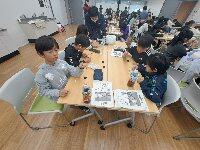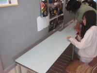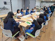 ただここで、担当者の方からお話お知らせがあり、お客様にできるだけ早く汗・焦る車をお届けするのに、もう少し作業時間を早くできないか!提案がありました。子どもたちも考えひらめき、「机上の整理・整頓をする星」「時間がもったいないから、待っていないで自分のパーツを同時に作る星」などの改善案ひらめきを出しました。さらに、受け渡しの距離を縮めたら汗・焦る時間短縮できると、机も近づけました花丸