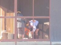 膨らんだエアドーム急ぎの中に親子にっこり笑うで入りました汗・焦る