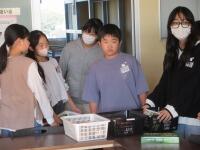 休憩をはさんで4校時は、訓練体験汗・焦るです。車づくりのための練習を体感しました。「ボルト締め付け体験星」、「板金体験星」、「定量つかみ取り星」、「ピンボード星」と4つのコーナーを、時間でローテーションしながら体験しました汗・焦る。ここでのポイントは、「安全第一星」です。安全器具についても説明お知らせしていただきましたキラキラ