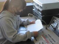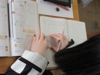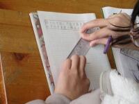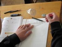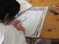辺の長さや角度を確認虫眼鏡し、早速作業開始汗・焦るです。みんな、集中して作図に取り組んでいます花丸