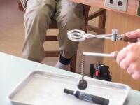 始めは、鉄球星が金属の輪まるを通り抜けていましたが、「熱したことにより体積が大きくなり、通らなくなる笑う」という予想ノート・レポートにもとづいて、実験動物します汗・焦る。きちんと鉄球を冷やす汗・焦るところまで確認虫眼鏡して、いよいよ実験開始お知らせです。