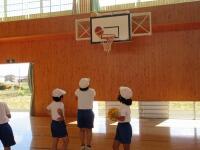 続いて、ボールを使った運動汗・焦るです。バスケットゴールを目指してシュート急ぎしたり、友達とパスしたりにっこりしましたキラキラ