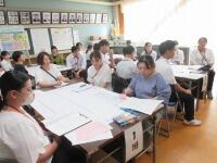 友達とも相談して考え、給食センターの人、牛を育てる人、牛乳を作る人、野菜を作る人、米を作る人、給食を運ぶ人、学校の先生、給食当番、保護者の方など、いろいろな人