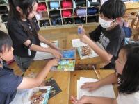 友達の作品を見ながら虫眼鏡、よいアイディアひらめきを自分の作品に生かしていきますキラキラ