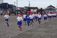 次は1年生です。転んでもあきらめないで最後まで一生懸命に走りきることができました。