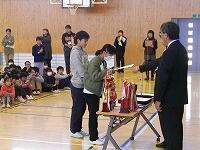 の賞状も表彰しました。代表の児童に合わせて起立、一緒に礼をします。