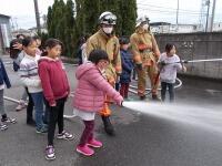 体験もさせていただき、その水圧に驚きました。的をめがけて放水しましたが、水