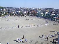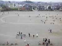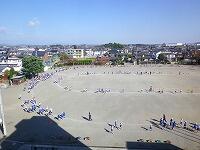がよかったので、持久走大会に向けての全校生練習が計画的にできました。風邪気味の児童やけがをしている児童は、4階図書室に集まって自主学習をします。その4階から見た練習風景は、、、