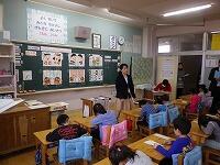 先週は5年生が研究授業を行いましたが、今日5時間目には、1年2組が算数の研究授業を行い、たくさんの先生方にがんばりを見ていただきました。足し算の問題
