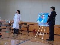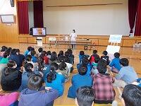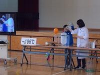 11/9(木) 5時間目に、子ども総合科学館の出前授業でサイエンスショーを見せていただきました。ー196℃の液体窒素を使っての実験です。冷やした空気の体積がどのように変化するのか、常温に戻すとどうなるのかなど、今までの理科の授業の知識を生かした実験を見せていただきました。