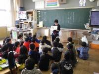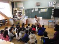 お話に子どもたちも集中5年総合 米づくり 其の一(種もみ植え)