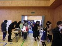 のみなさんとおうちの方が来校しました。体育館で受付を済ませて、子どもたちは1年生