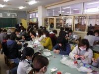 給食」を行っています。今日は4時間目に、理科室と図工室を会場に『コサージュ