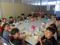 給食』です。なかよし班ごとに集まって給食をいただきました。