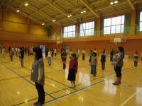 体育館に集合し、はじめの会を行ったら、まず班ごとの集合写真を撮りました。