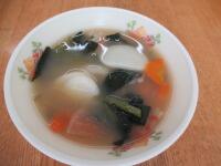 』で「ごはん・牛乳・キャベツと豚肉のみそ炒め・お雑煮・大平の黒豆煮