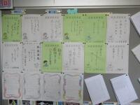 1階の廊下には、給食に関するポスターや作文、標語など、各クラスの代表作品