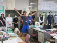 ④4年生が笑う全体で発表しましたお知らせ。 その後、3年生からにっこり感想を発表お知らせしてもらいました。