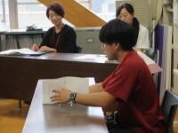 まず、図書室の先生笑うから、本を本借りるときの確認虫眼鏡のお話お知らせを聞きましたグループ