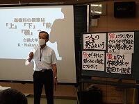 最後に、中山先生から講評をいただいた後、中山先生の考える展開例で模擬授業を行いました。教職員は3年生になったつもりで授業を受けました。