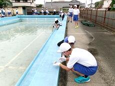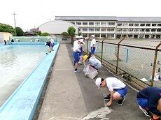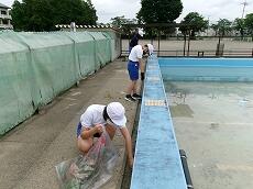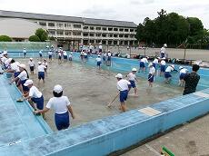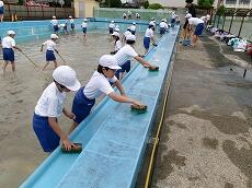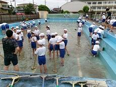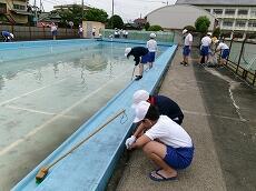 5、6年生が4校時や5校時、昼休み等を使って、プールをきれいにしてくれました。