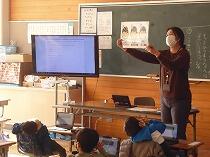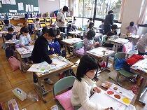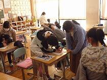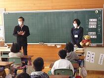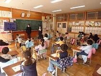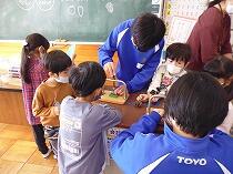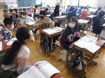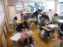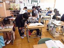 本校出身の6名が、1年生や6年生のミニ先生として授業のアシストをしました。