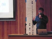 講師にダガ・グラフィックスの石原隆行先生をお招きし、「パソコンやスマホ等の有害情報から青少年を守る」という演題で講演をいただきました。