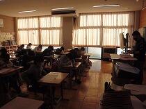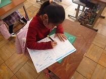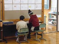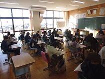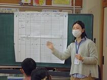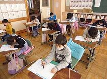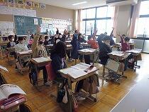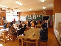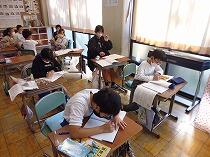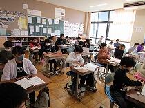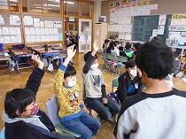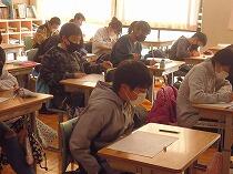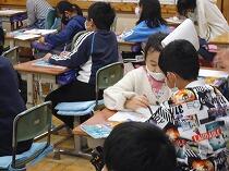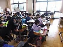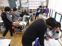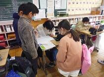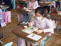 1年生は担任の話をよく聞いてアンケートに答えていました。
