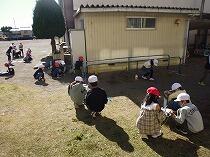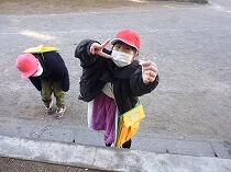1年生は、持ってきた豆を鬼に向かって投げました。