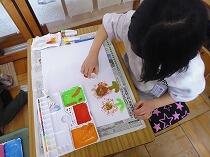 1年生は、11/2の校外学習で集めてきた木の実や葉を使っておもちゃを作りました。