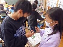 最初、先輩たちのサポートに児童は緊張した様子もありましたが、生徒たちがしっかりとした態度で接してくれたので、だんだん先生と児童という関係性のように見えてきました。職場体験ご苦労様でした。