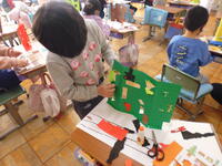 磁石が引き寄せ合う力を利用して、紙のチョウチョが空中に浮いたり、ワニに餌をやるとかみついてきたりするおもちゃを作っていました。
