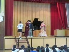 上学年、下学年に別れ体育館で演奏をまじかで聞きました。バイオリンの生の演奏を聴くことが初めての子も多く、耳を傾け、よく聞いていました。とてもよい時間を過ごすことができました。