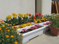 校庭の桜の花も、花壇の花も元気な子供たちが登校してくるのを待っています。そして、9日の入学式にも見事な花を咲かせてくれそうです。