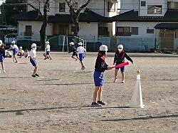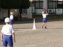 飛んできたボールを誰かがとったら守備の子たちが一か所に集まるようにしてアウトやセーフを決めるので、運動量を確保しながら楽しく活動できています。