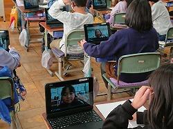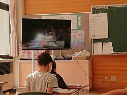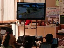 担任は発表内容にあった場所をグーグルアースを使って映し出し、みんなでよいところを確認していきました。