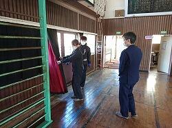 12/19に栃木刑務所の職員の方がお越しになり、お願いしていた体育館のカーテンの直しが終わったとのことで設置をしてくださいました。