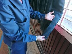 体育館のカーテンは、経年劣化で至る所裂けているような状態のカーテンで、直すということ自体無理ではと思われる状態でしたが、快く引き受けていただきました。