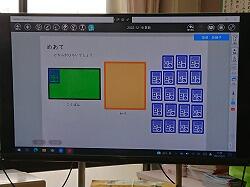 21日は、1年生の授業で算数の広さ比べの学習をしました。