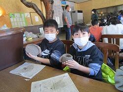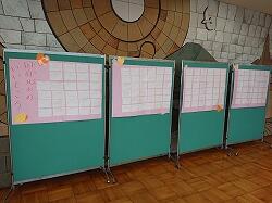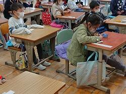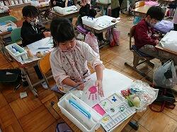 (体育用の帽子をかぶっているのは、帽子の色で作業中であることや困ったことがあるなどの状況を担任に知らせるためです)