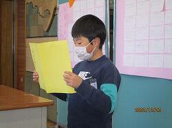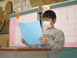 1年、3年、5年の代表児童が、2学期を振り返る作文を発表しました。