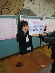 最後に、来年度の登校班長から挨拶をし、保護者の方にも一緒に登下校の道を通って帰っていただきました。