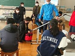 指導の教頭先生の周りで、真剣に話を聞いています。