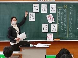 例として、担任が「田」と「力」を組み合わせて「男」になるという話をするとみんな一生懸命考えていました。