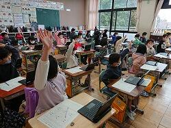 鶴見先生からは、本校児童の学習へ取り組む姿勢や心構えのよさ、教員の熱心さや効果的な指導法を褒めていただきました。