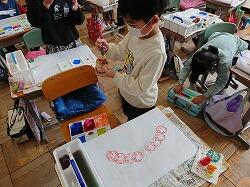 1年生は図工で「スタンプ スタンプ」という単元を学習しました。